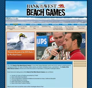 Hybrid HTML / Flash event website for Huntington Beach surf, skate and action sports festival sponsored by Bank of the West.