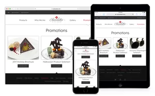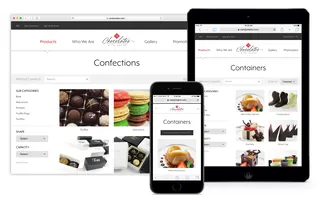Business-to-business website features a deep product catalog and lead-generation for this enterprise, white-label and custom chocolatier.