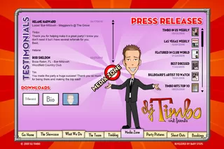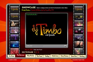All-Flash, caricature animations, thumping bass and flashing lights. This site had all of the bells and whistles that Enterprise Entertainment's World-Famous DJ Timbo brings with him to every show. Schedules, downloads and more - this site had at least 1 of everything.