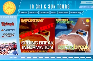 Brochure website for Get Travel's teen tour division focused on high school and college students' Spring Break and Winter Ski trips.