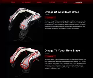 It's safety first for this motocross neck brace manufacturer. Website complete with galleries, safety guides and product listing gives this start up, a leg up in a competitive market.