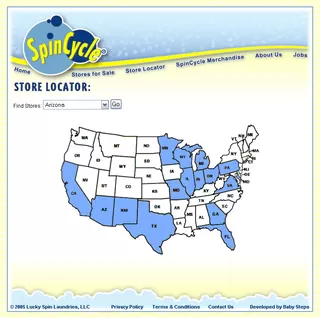 Website for nationwide chain of coin-op laundry stores. Integrated store locator, merchandise and easy-to-use Brix CMS.