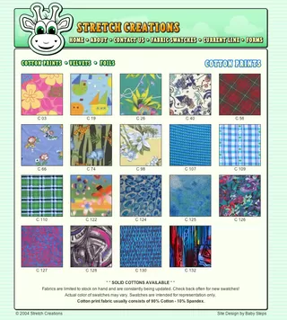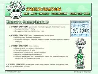Website for Eugene, Oregon - based childrens activewear company, showcasing styles and designs available.