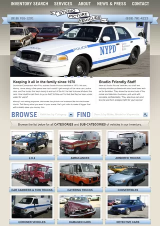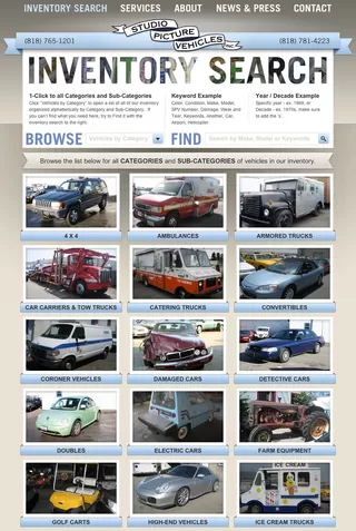 Hollywood's original picture car rental service will find it, paint it and even blow it up for you. This website centralized inventory for SPV giving their customers instant access to all of their cars reducing friction and increasing sales.